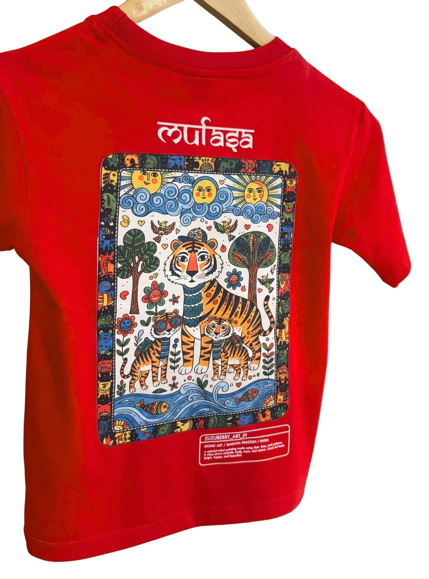 The Gond Tiger - Red Oversized Cotton T-shirt (Unisex)